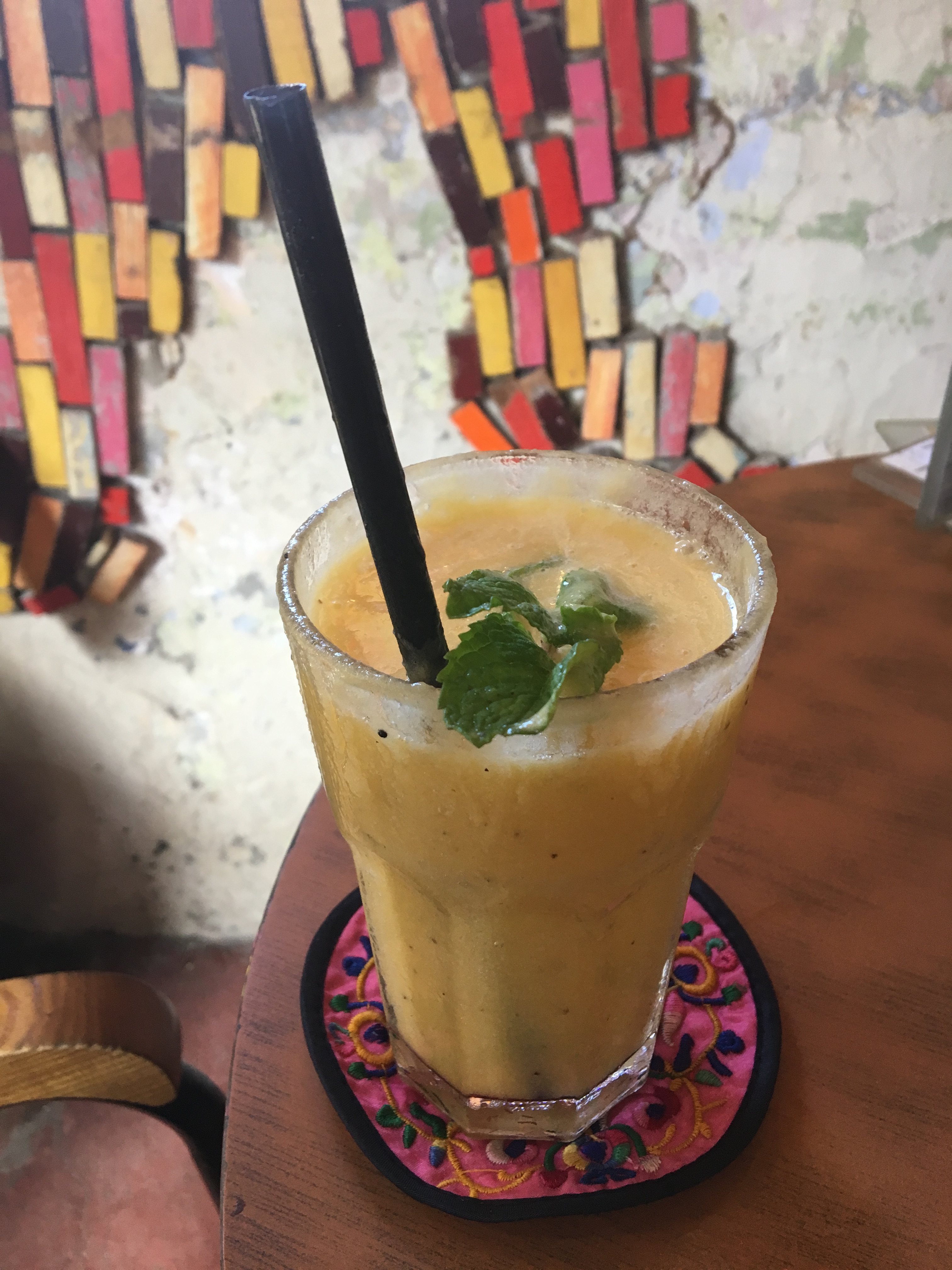 Le lendemain, il était temps de reprendre la route. Mais avant cela, nous nous sommes arrêtés à un café au allures exotiques pour déguster un smoothie aux fruits frais : Malaysia 13 states coffees.