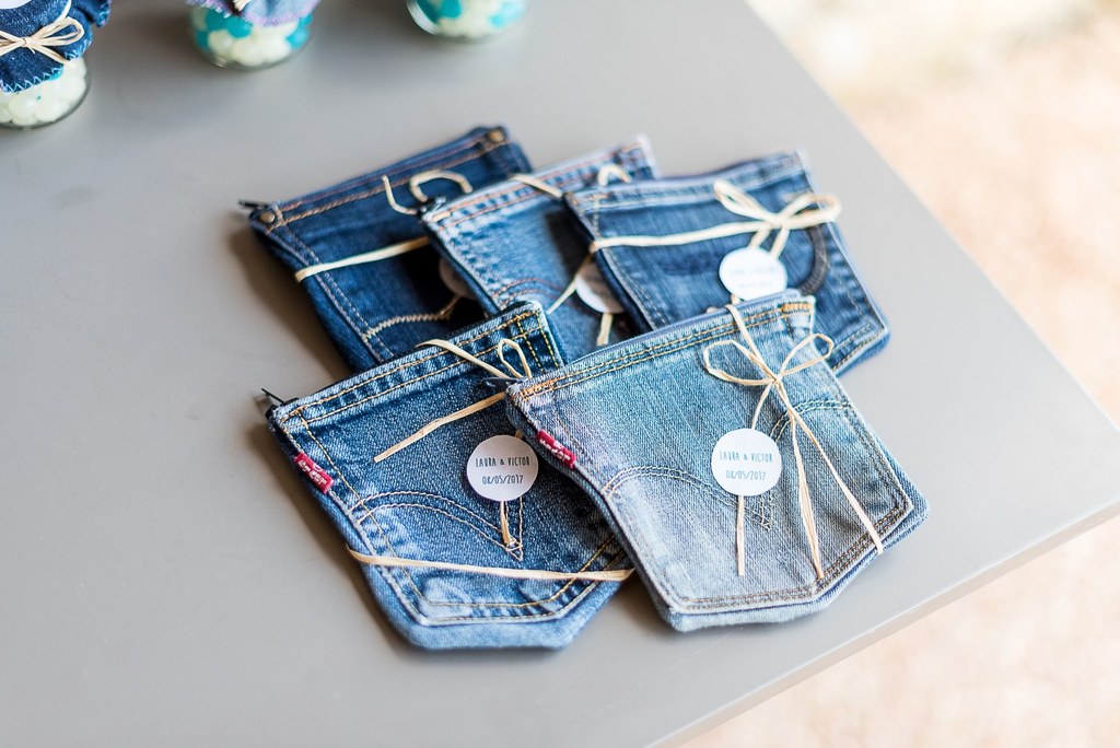 – des cadeaux invités (poches de jean en guise de porte-monnaie)