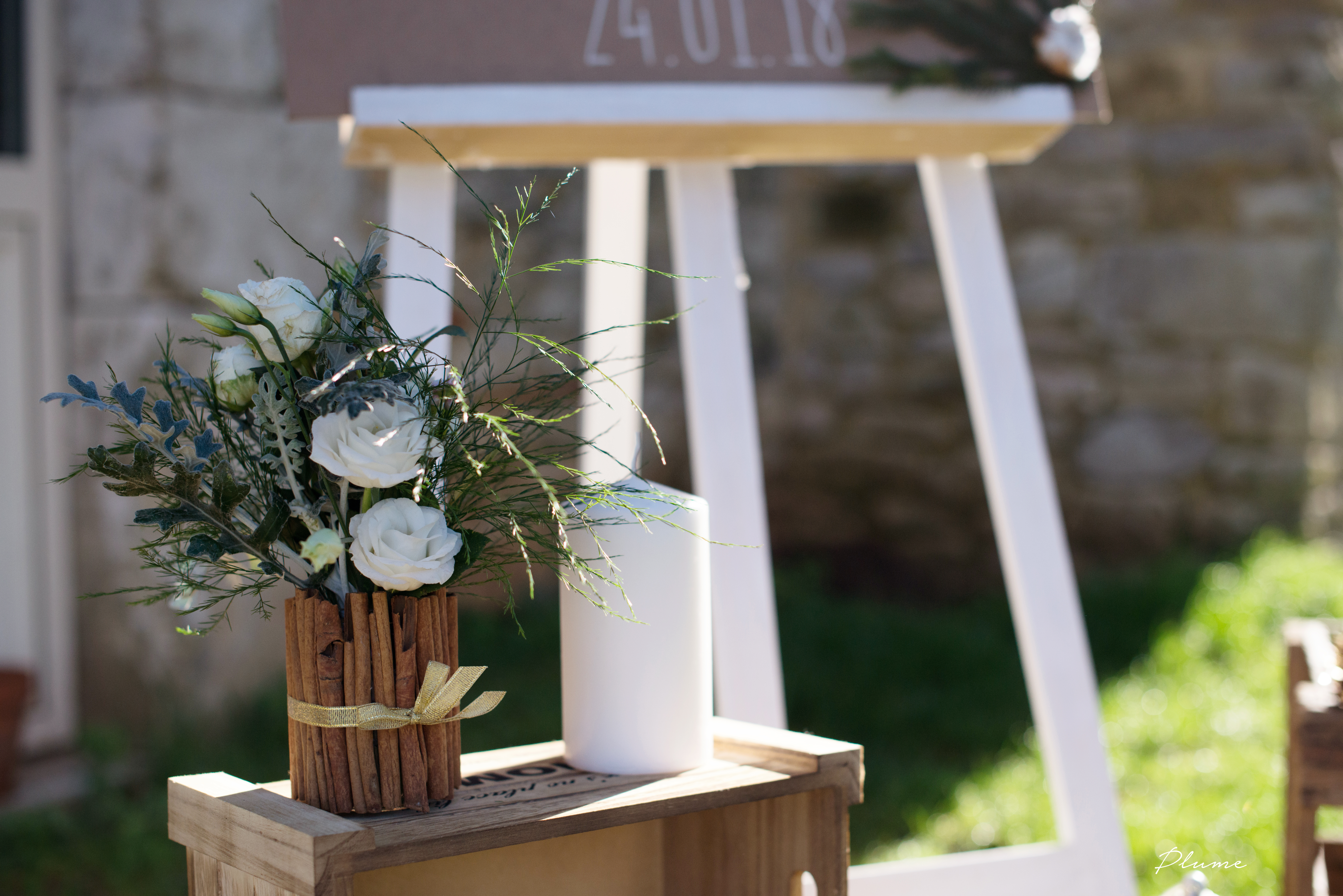 Manon LEGER,Wedding planner, organisation : Nos jours heureux | Fleuriste/Décoratrice : Fleurs Papiers Déco | Photographe : Plume photographe, l’effet mère | Lieu : Les granges Tourondel | Traiteur : La fée gourmande | Robe de mariée : Elsa gary | Costume : Stratège Montauban | Coiffure : Art coiffure | Maquillage : Soin de soie | Modèle : Laurie | Modèle : Landry