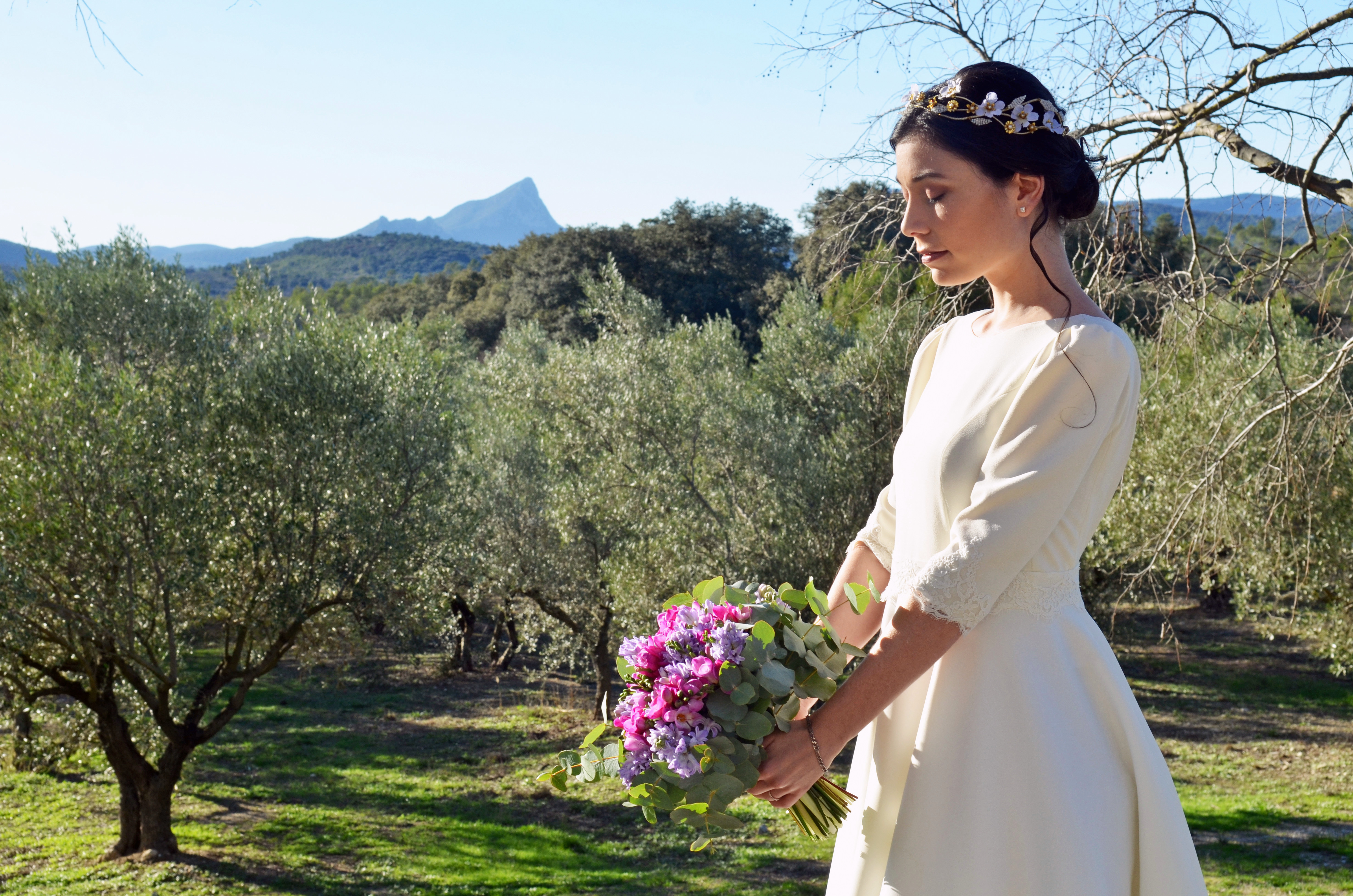 « Par une belle après-midi hivernale, dès l’apparition des premiers rayons du soleil… Nous avons eu l’envie de réaliser un shooting d’inspiration mariage au Mas St Germain, à Saint Bauzille de Montmel, dans l’Hérault. »