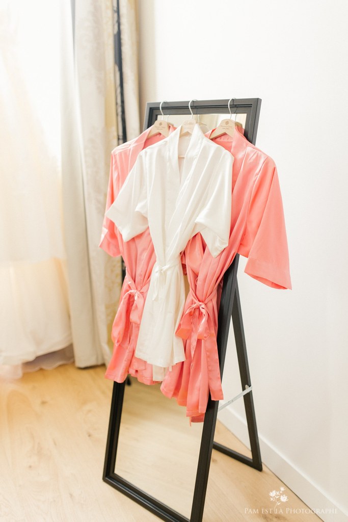 « Deux photographes ont participé, avec chacune leur style, l’une sur les instants « volés » et la seconde plus esprit fine art. Il y avait la mariée et 3 bridesmaids ainsi qu’une petite fille. Nous avons choisi le parti pris des robes blanches courtes pour les 3 témoins.