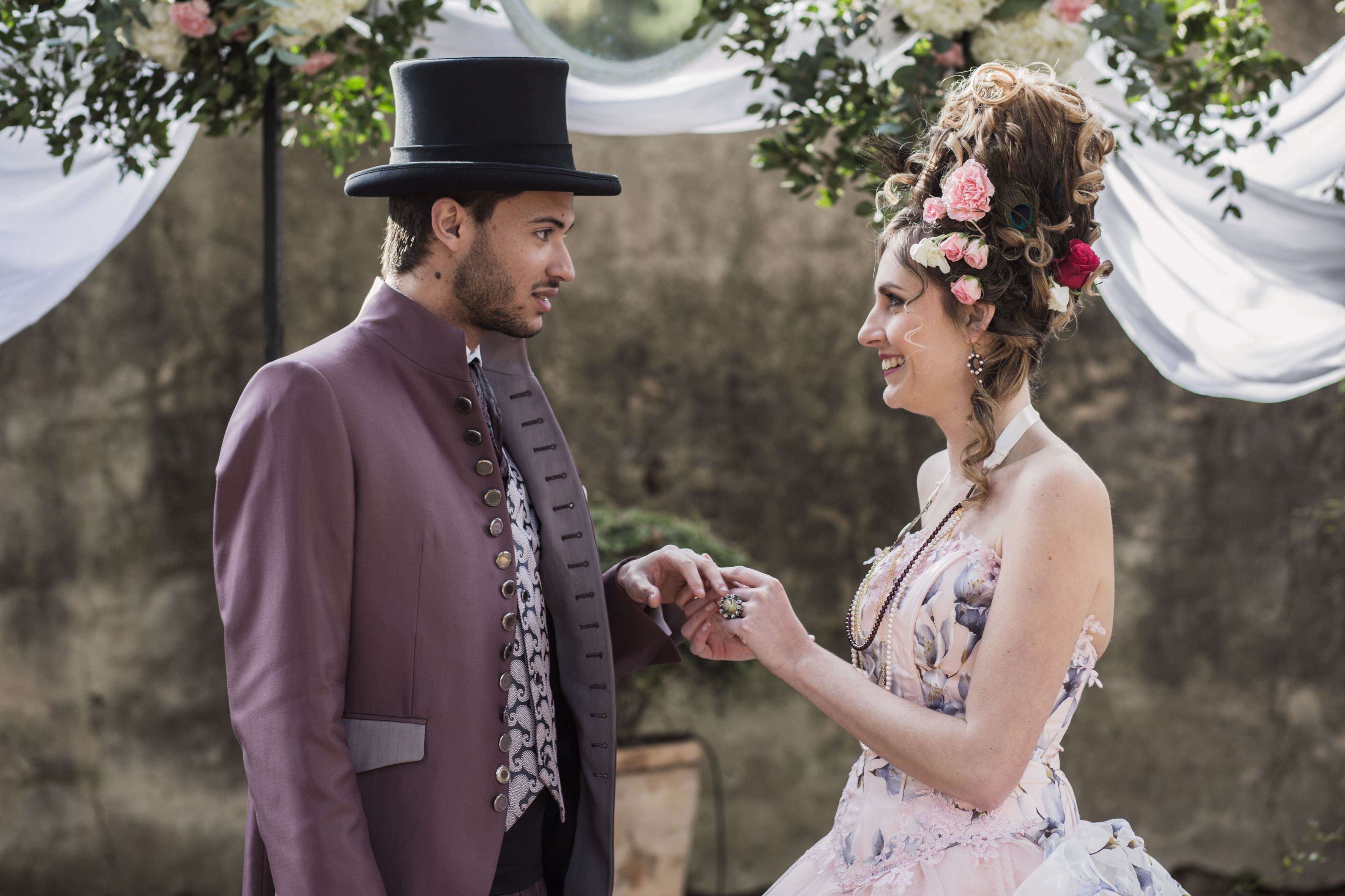 L’idée du « scénario » est d’un mariage en secret. C’est pour cela que j’ai volontairement choisi de mettre en scène que les « futurs mariés » on peut y voir leur rencontre, leur jeu de séduction et pour finir l’union clandestine. »