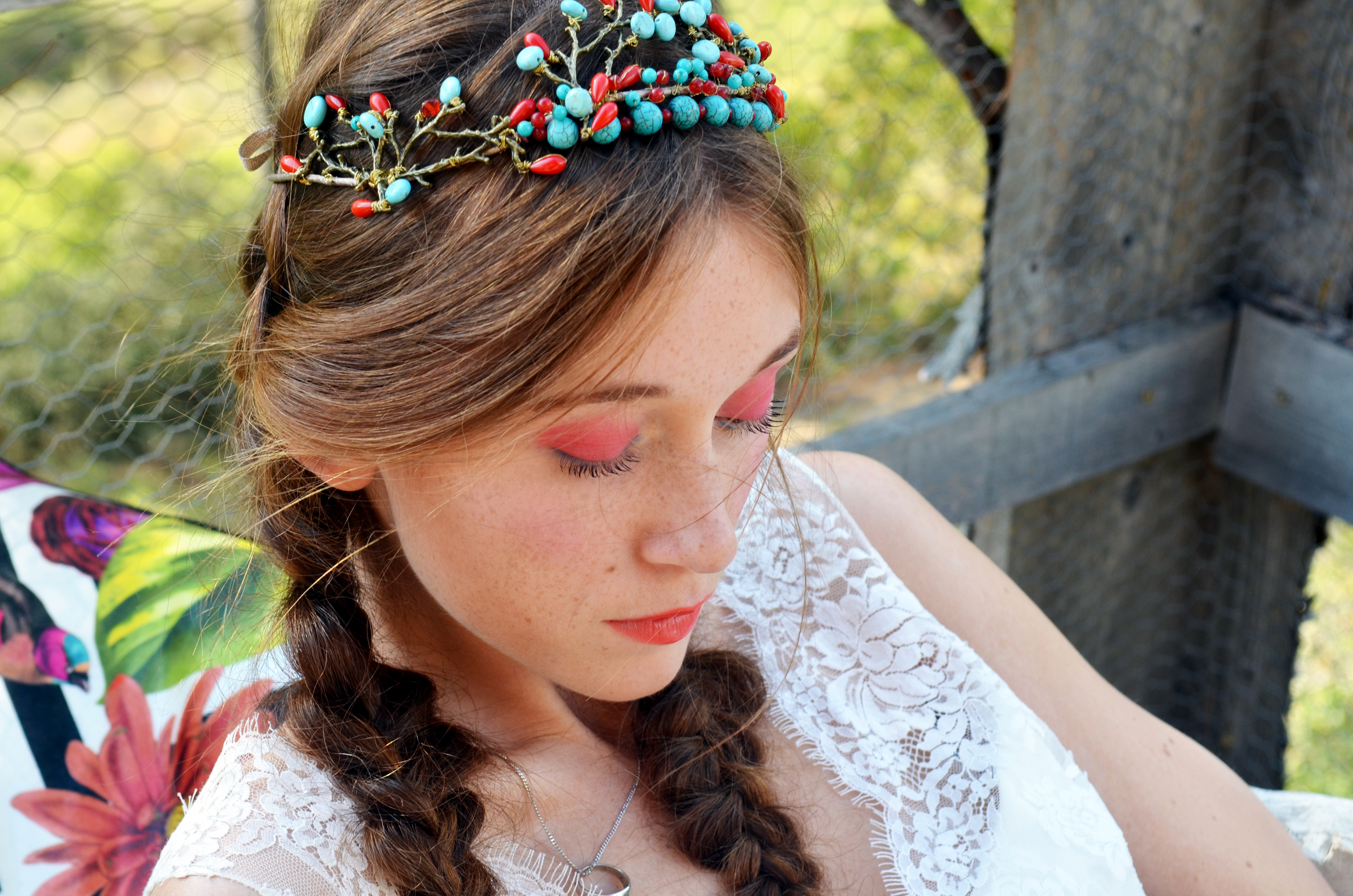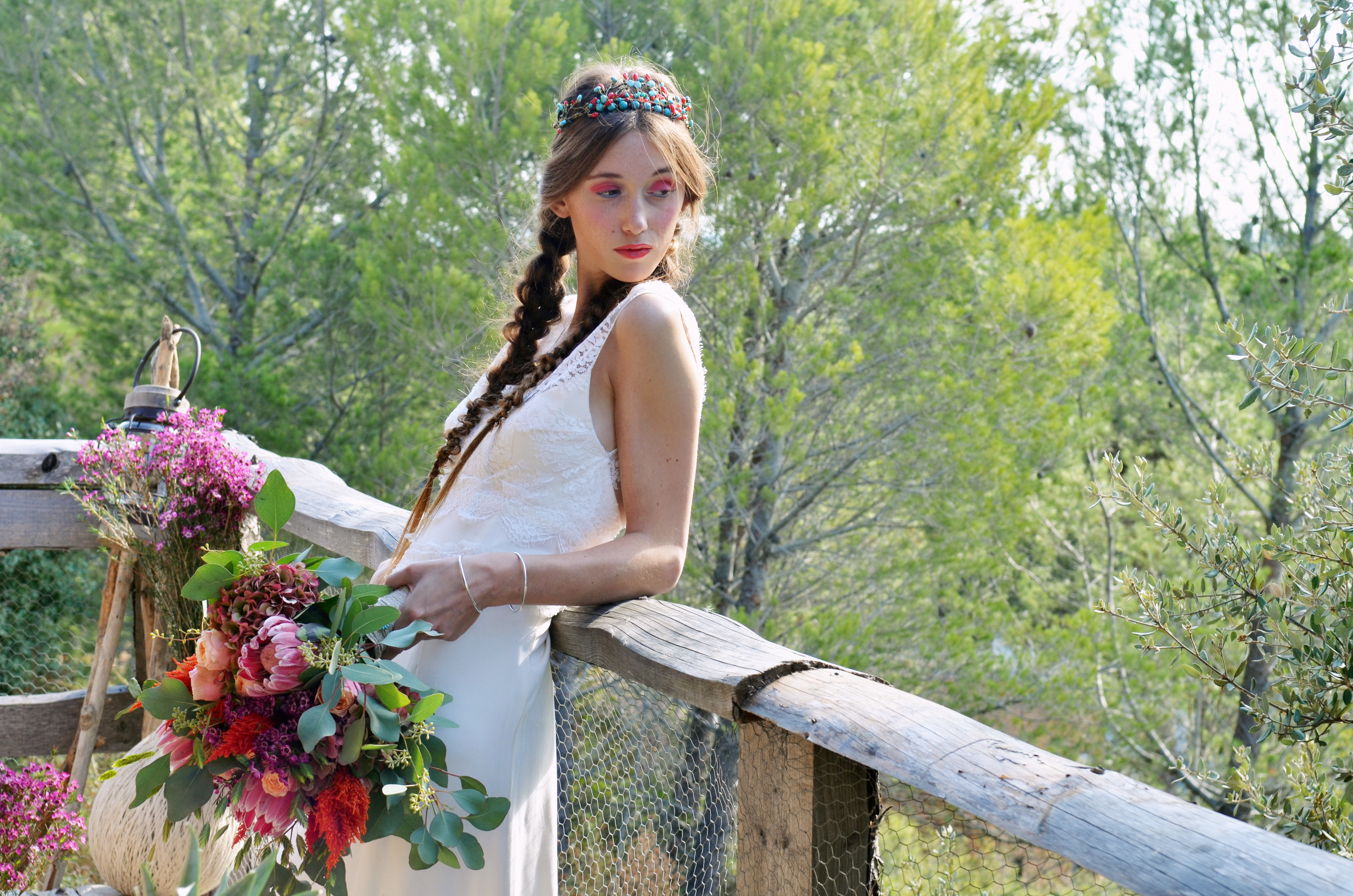 Afin de répondre à la thématique de ce thème, plusieurs éléments sont primordiaux. Vêtue d’une robe fluide et bohème, la mariée s’épanouie en boots en exhibant fièrement une mise en beauté colorée et emplie de fraîcheur pour le second volet du shooting.