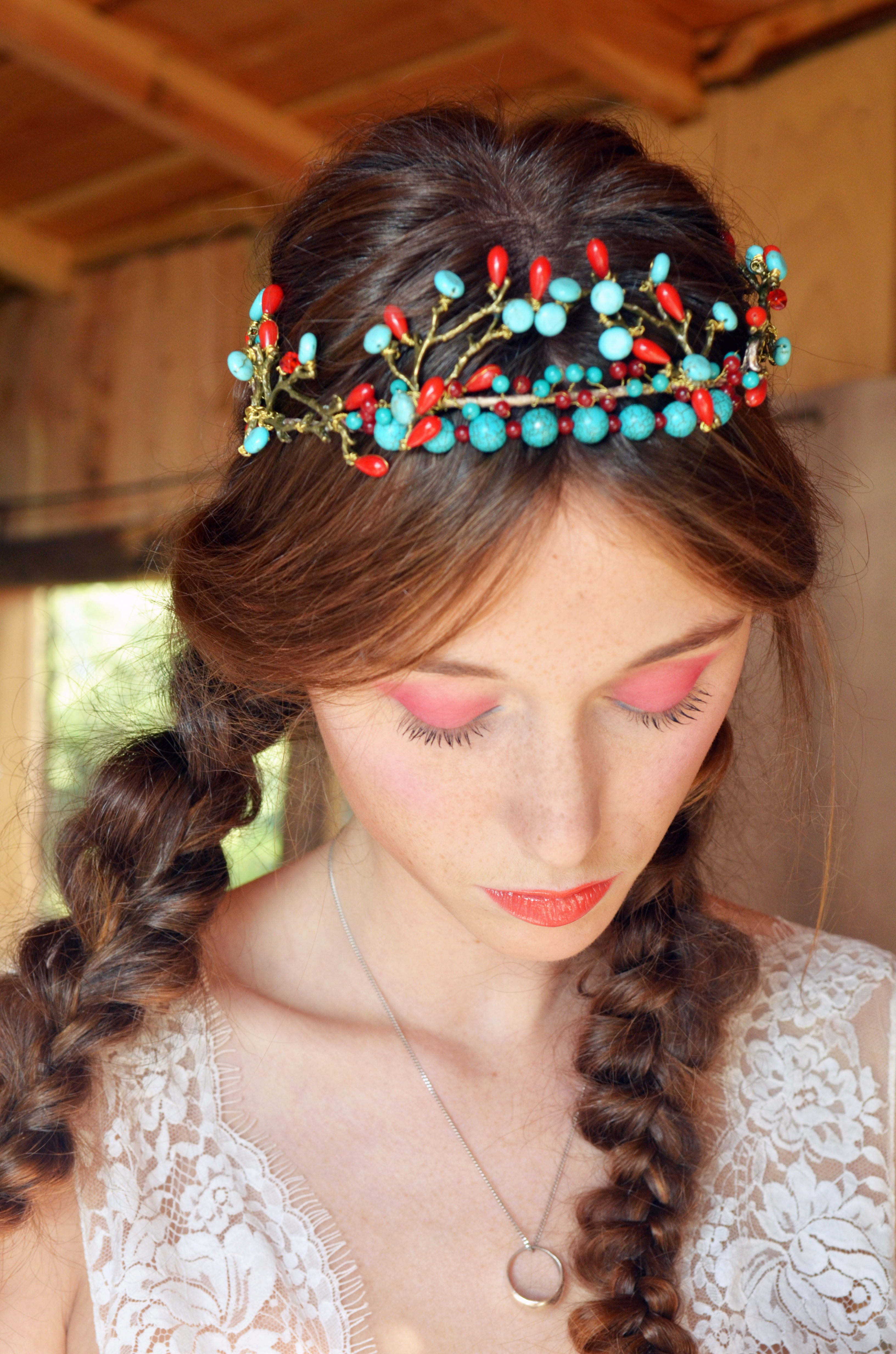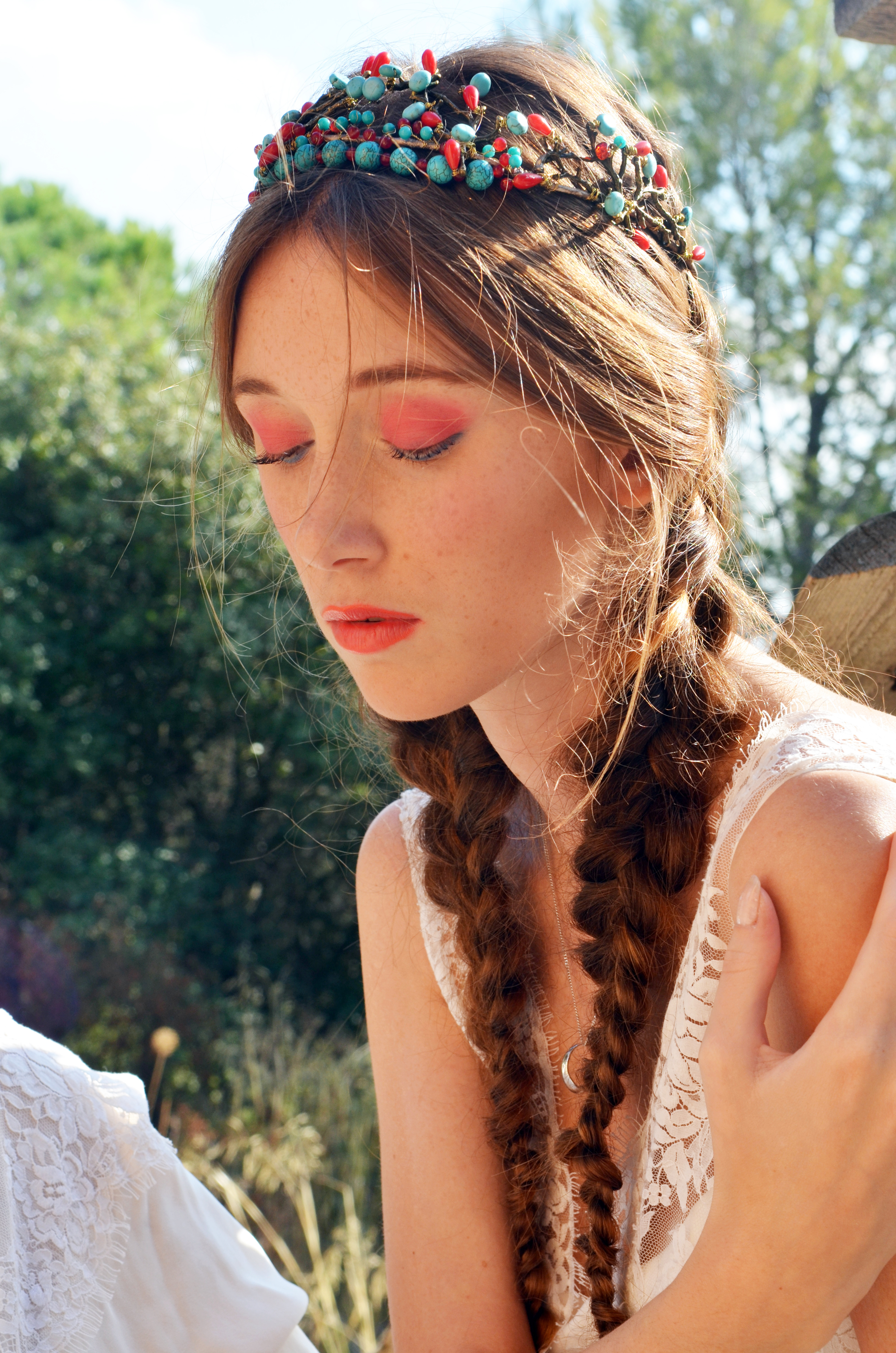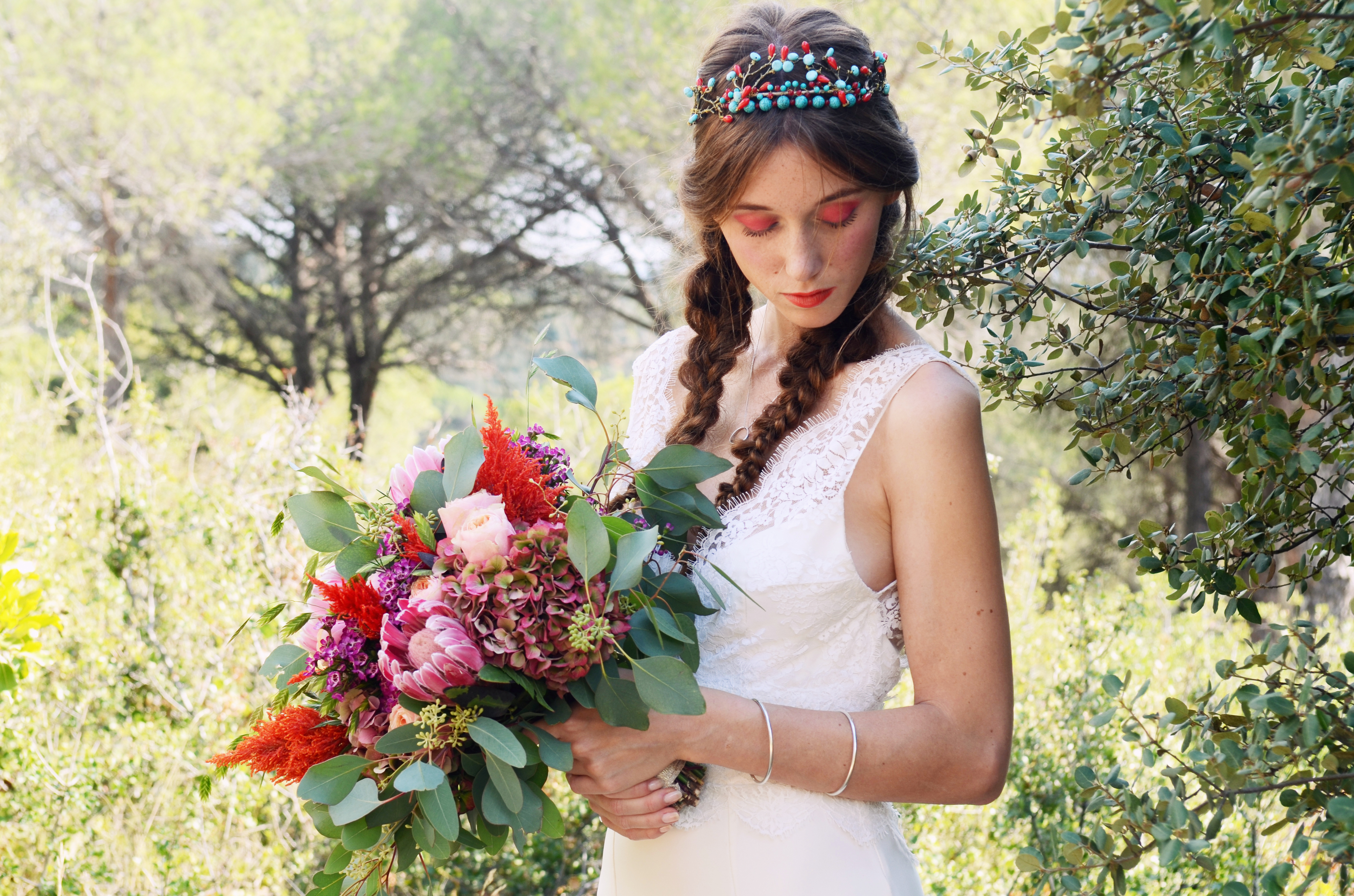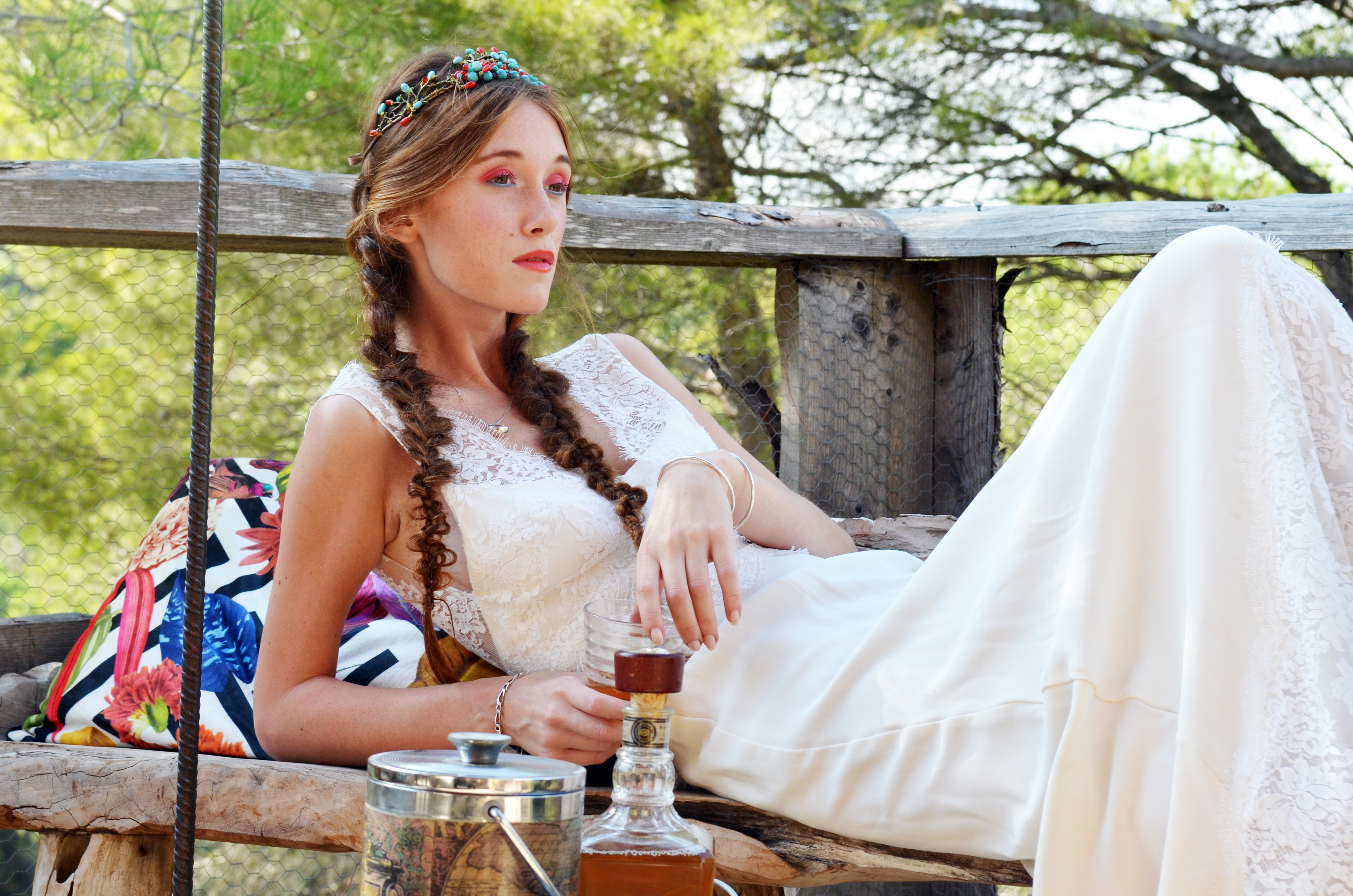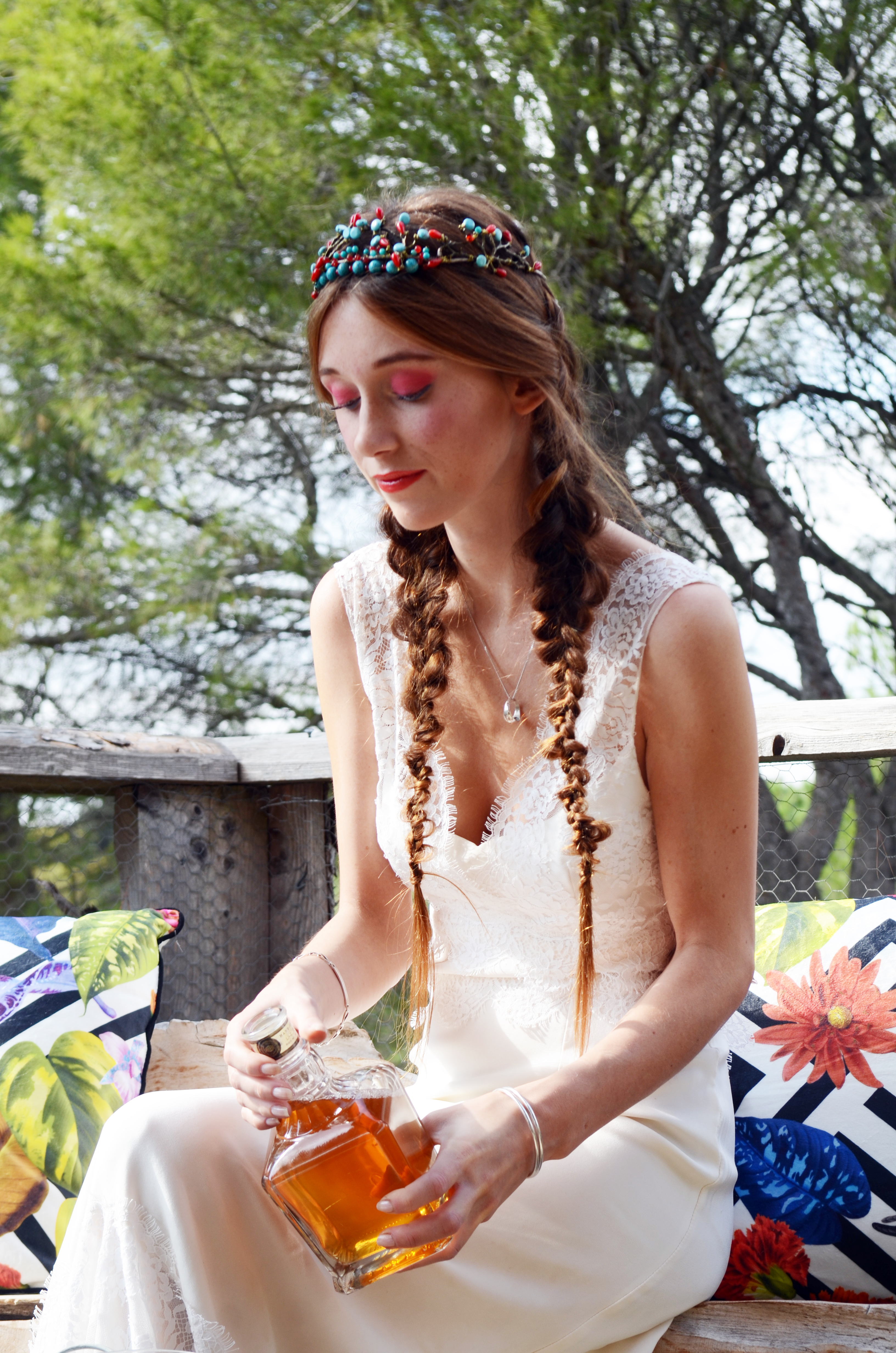 Afin de répondre à la thématique de ce thème, plusieurs éléments sont primordiaux. Vêtue d’une robe fluide et bohème, la mariée s’épanouie en boots en exhibant fièrement une mise en beauté colorée et emplie de fraîcheur pour le second volet du shooting.