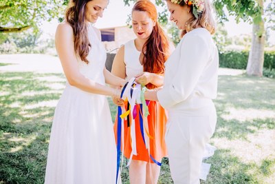 C’est dans cette atmosphère qui nous semble à la fois paisible et pétillante que les deux mariées vont se dire « OUI » lors de la cérémonie laïque menée par l’officiante Adeline ROUX.