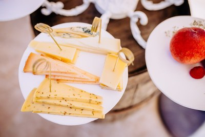 Une présentation de fromages par la crèmerie des biquettes et une clôture gustative avec le wedding Cake monté par Paillettes et Sucreries n’a pas fait fausse note avec l’harmonisation des couleurs du thème.