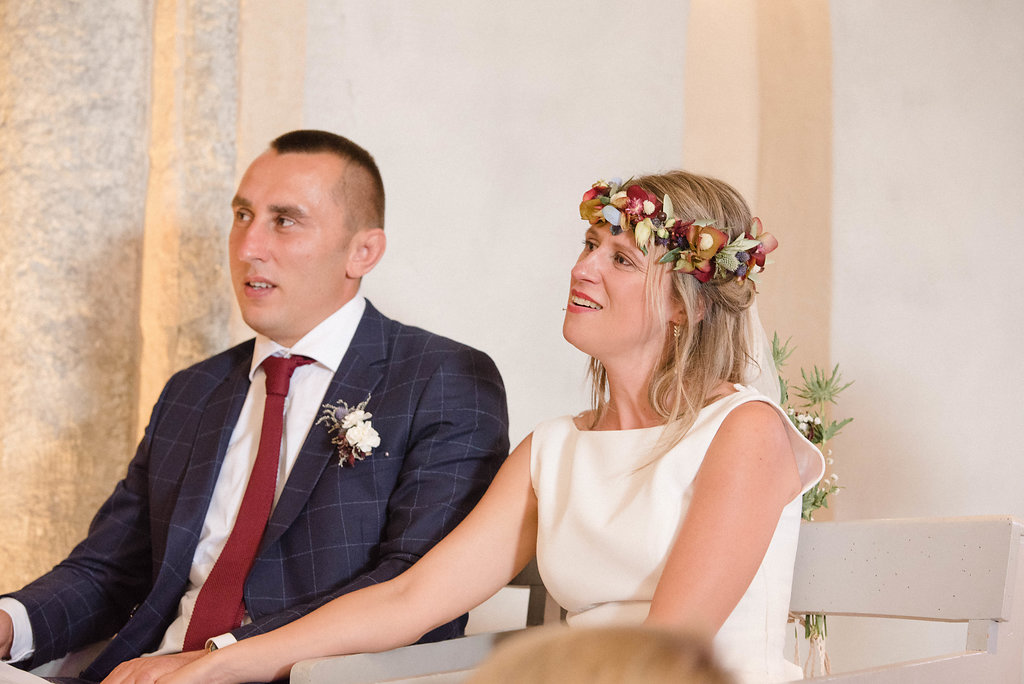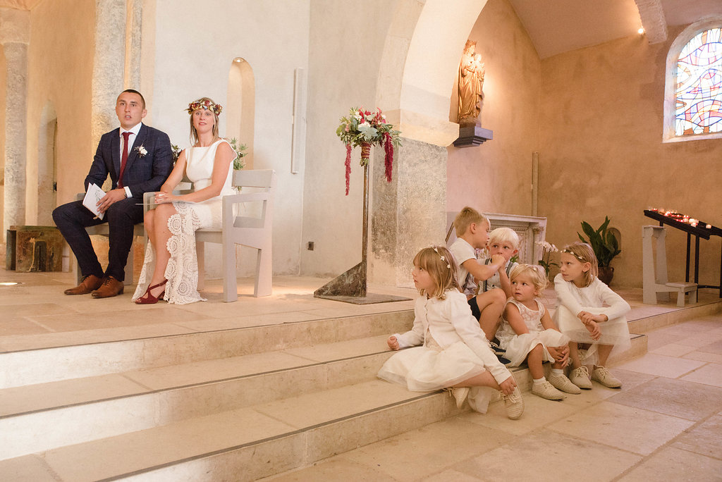 « La cérémonie civile a eu lieu en toute intimité le 21 juillet dernier. Quelques mois avant le mariage, afin de mieux profiter de la présence des proches qui venaient de loin (Belgique, Nord de la France). »
