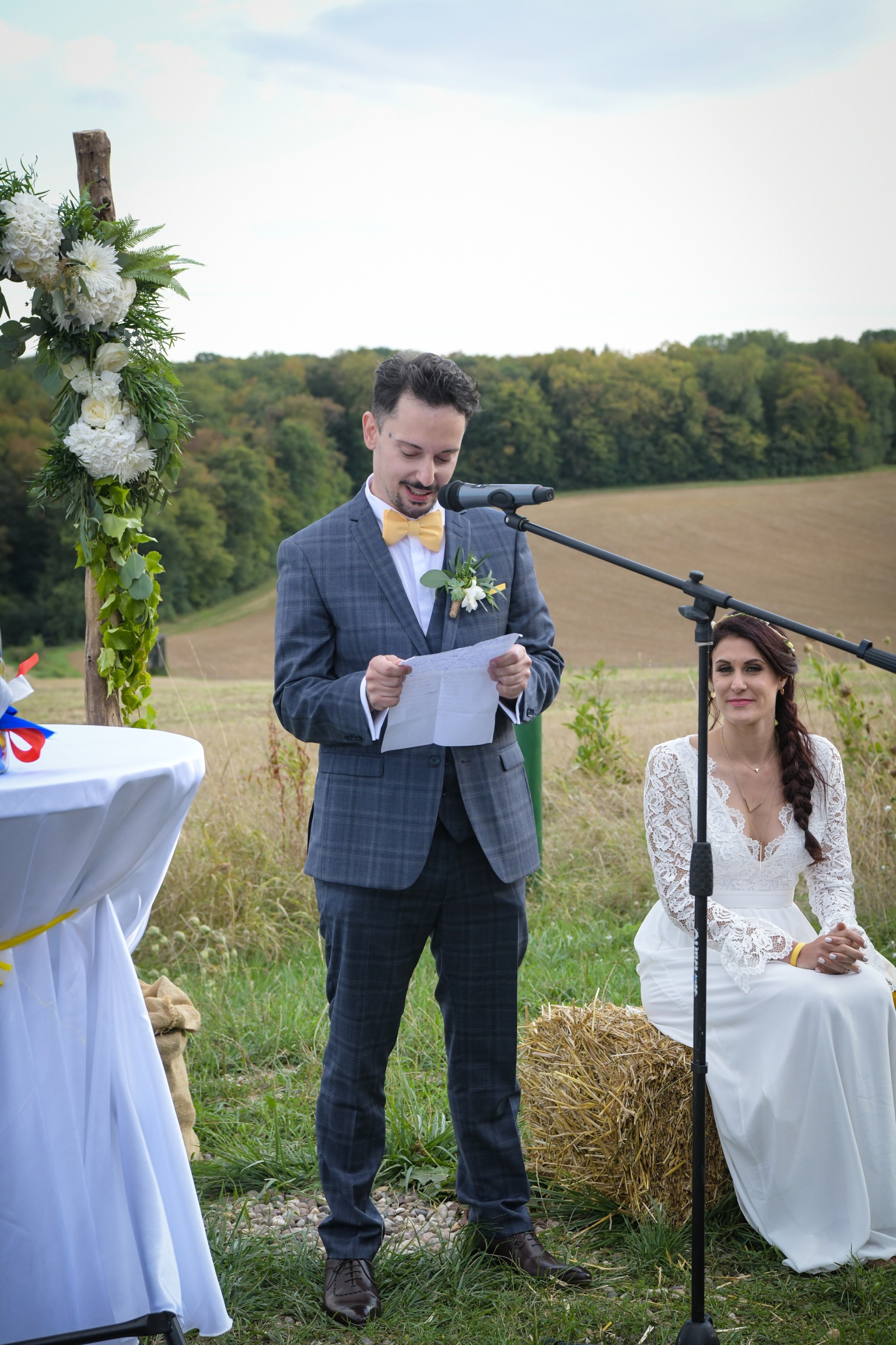 La cérémonie laïque a été entièrement créée par une amie. La soirée a été entièrement personnalisée en fonction de nos envies avec notre DJ.