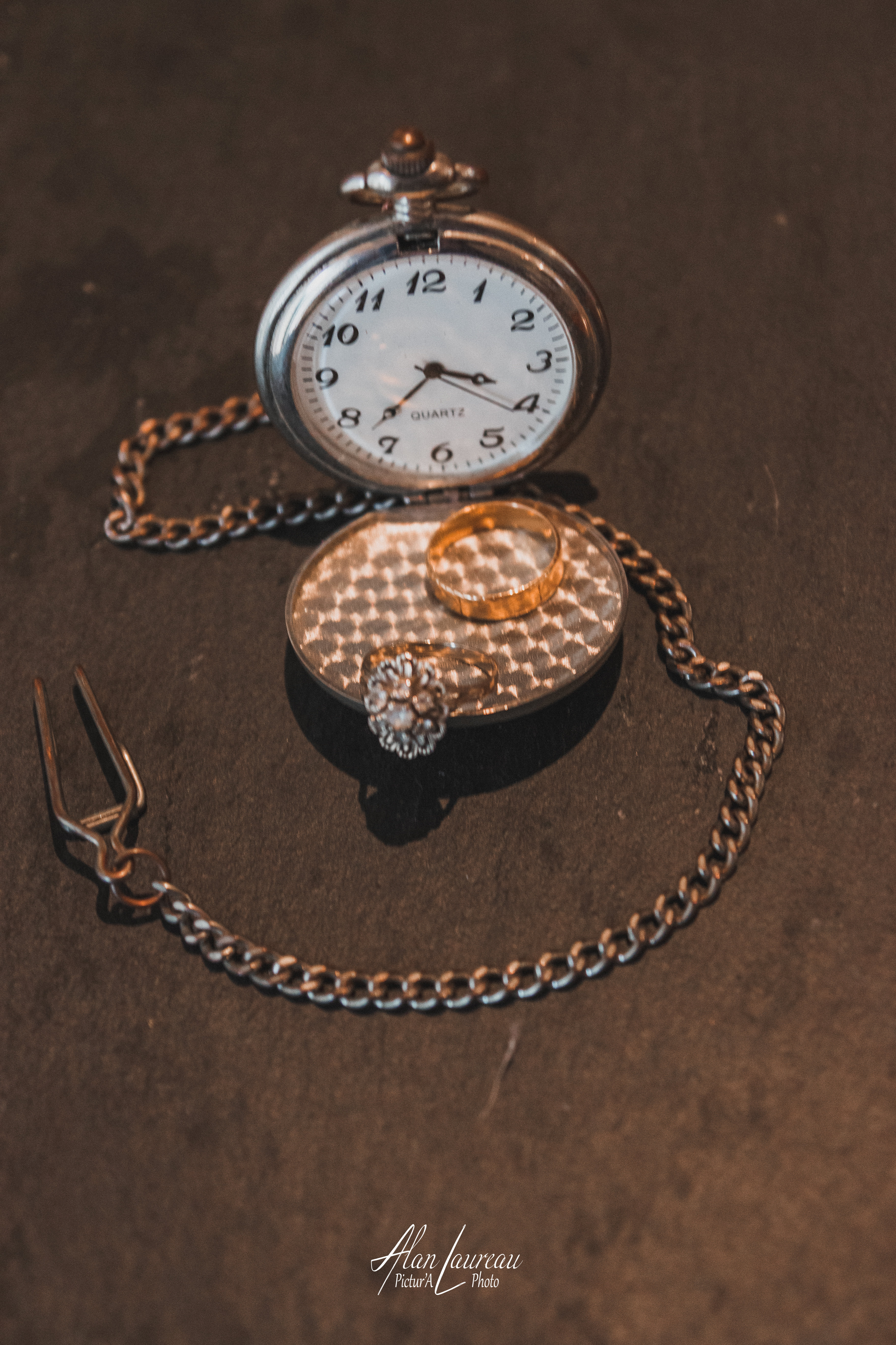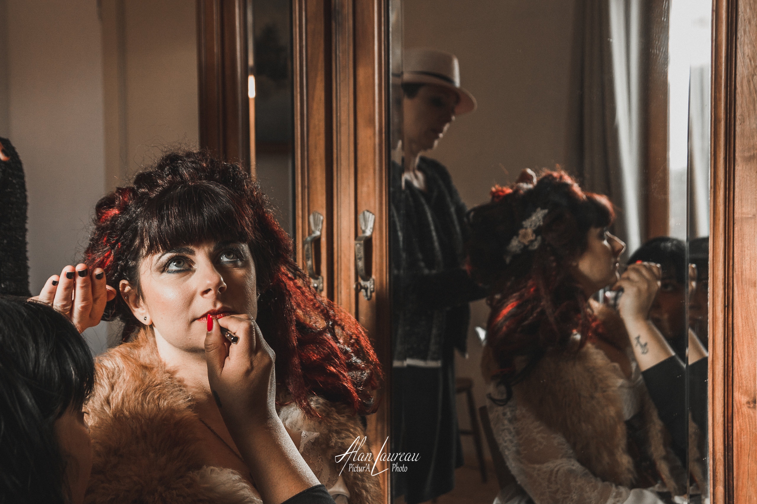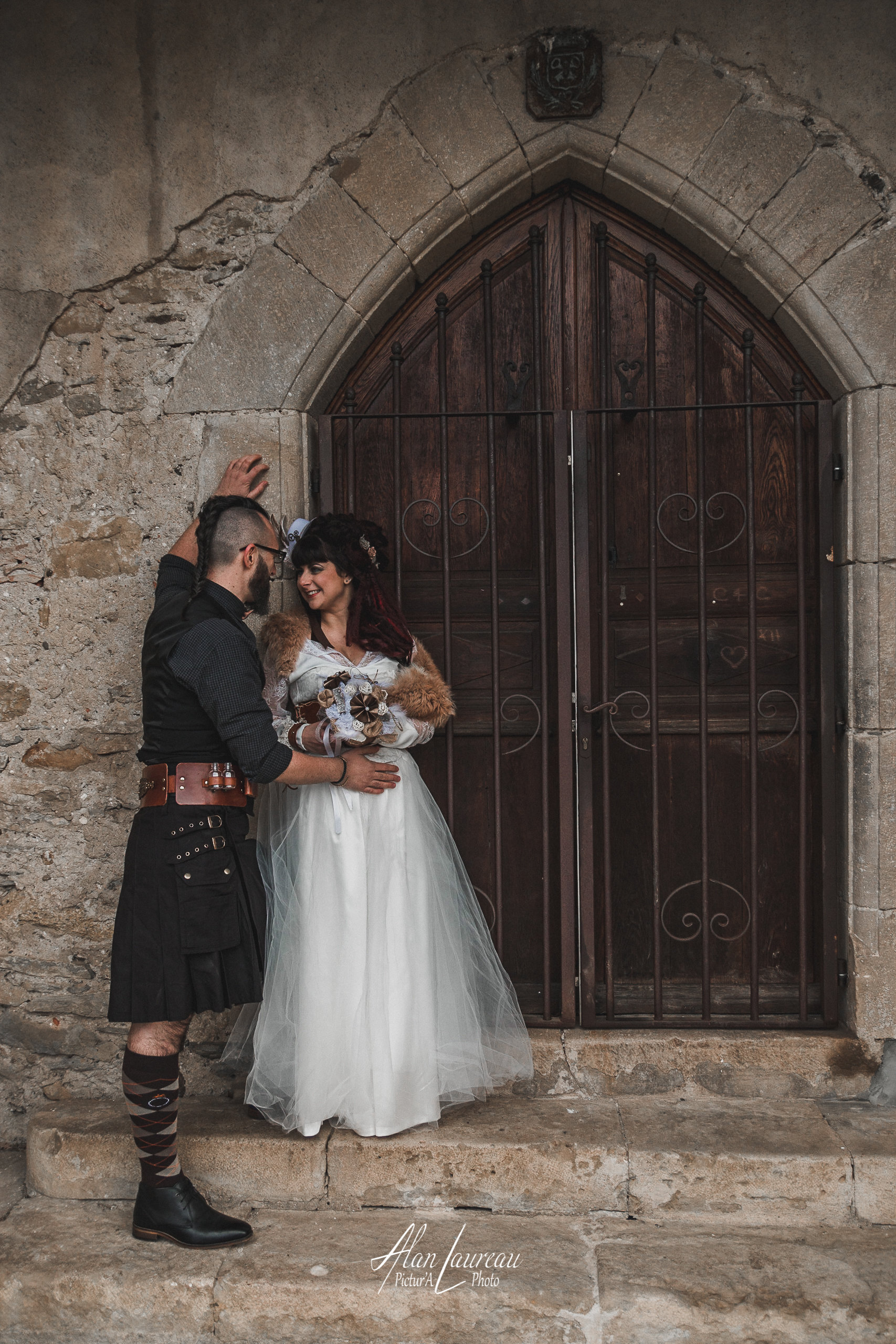 C’est le moment pour le photographe Alan de Pictur’Al de réaliser les photos des couples dans un décor unique. Près de la chapelle on découvre, un fauteuil en cuir imposant, quelques caisses en bois, un pendule, des lampes a huiles, un appareil photo et quelques bougies pour donner une ambiance intimiste. »