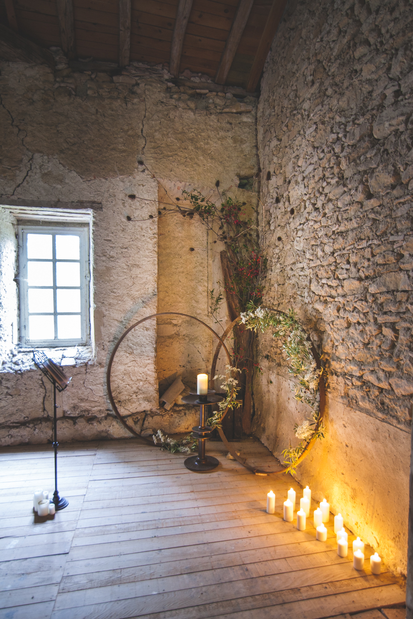 Tout débute dans un majestueux château Cathare du 13ème siècle, en Occitanie. Ce château a conservé l’esprit forteresse moyenâgeuse qui a plongé tous nos prestataires dans une autre époque. Parés de costumes et d’accessoires façonnés mains, deux amoureux vont échanger leurs voeux…