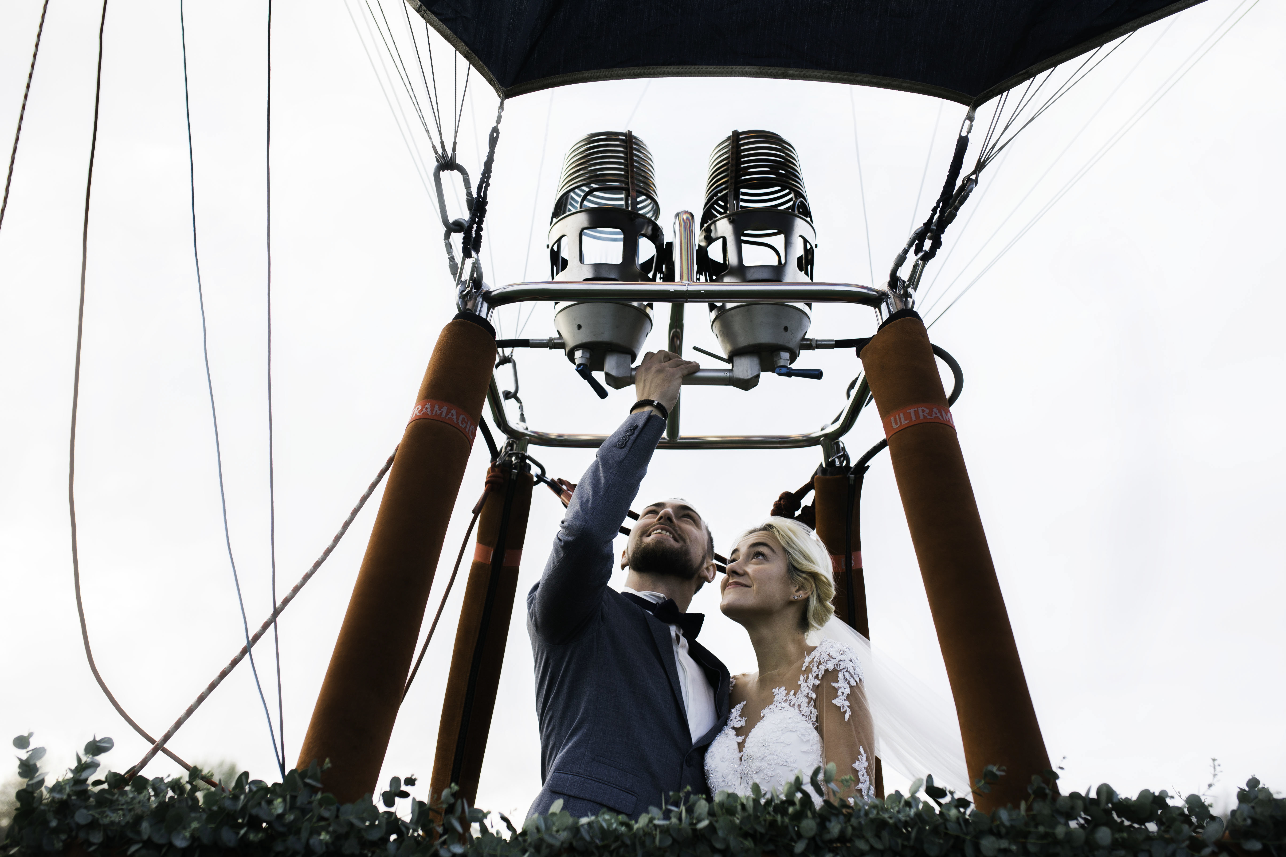 C’est au détour d’un mariage qu’elle photographiait, qu’Eva Martinez a été spectatrice d’un moment original et privilégié. Le père de la mariée, aéronaute, prenait les commandes d’un ballon libre permettant de s’envoler le temps d’un instant avec les mariés.
