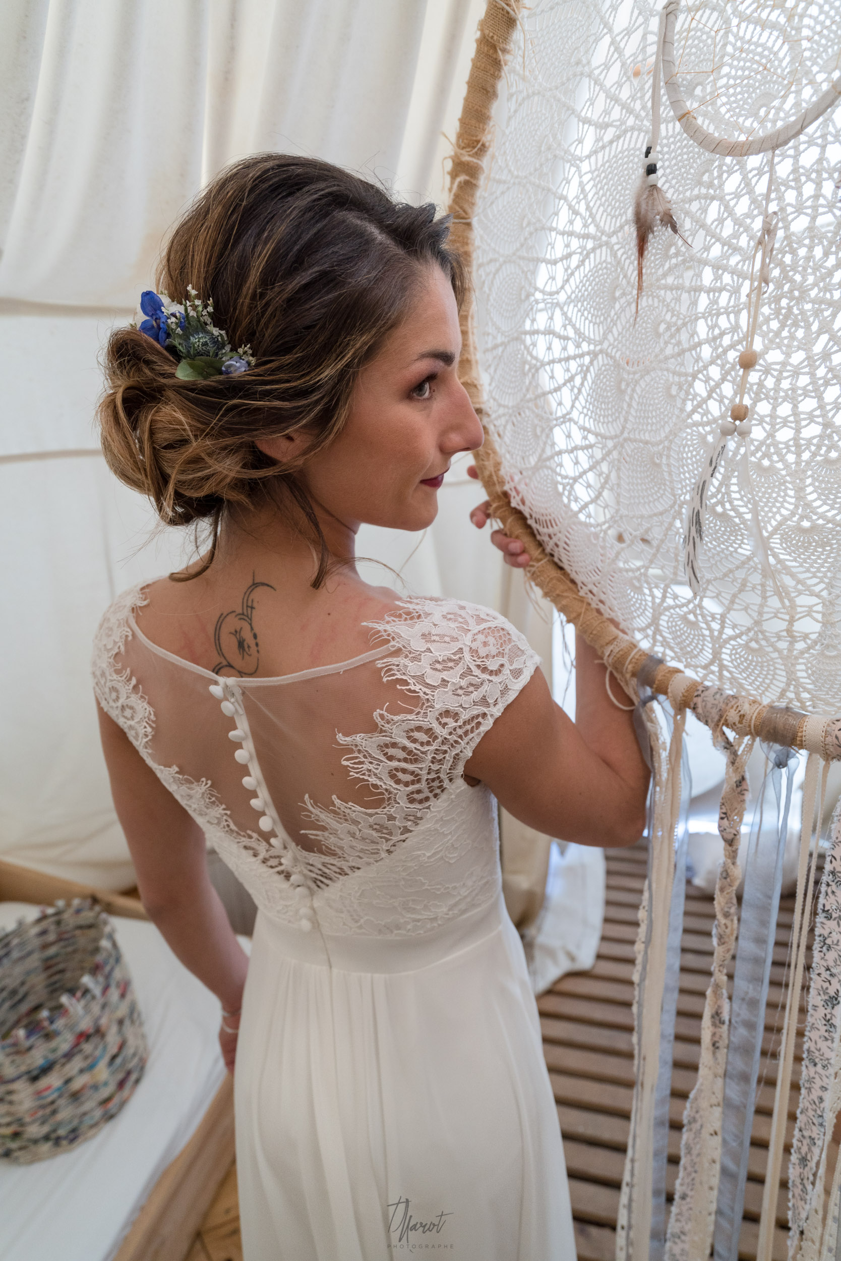 Photographe : Thibaut Marot / Lieu : Mas Cabanids / Maquillage : Marie Bonafos / Coiffure : Jess Cheveux D’ange / Fleurs : Claire Benejean, Passion Flore / Robes : L’écrin Blanc / Papeterie: les petits papiers du bonheur / Bijoux : Olivier L / Spectacle Pyrotechnique : Anne-Lise Pfol / Vidéaste : Kévin Munar / Organisation, scénographie & Décoration: Partage Événement / Modèles : Kelly et Romane