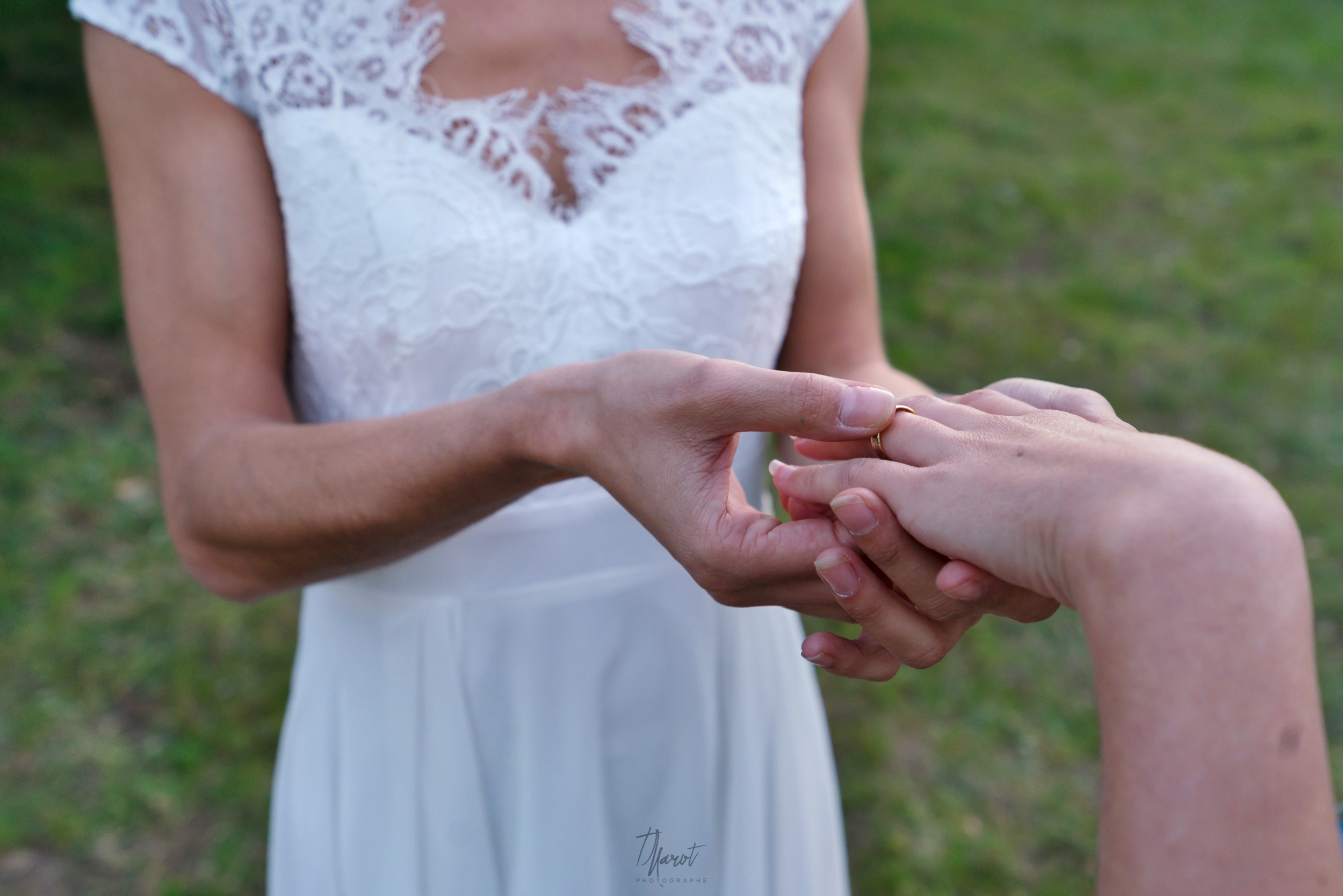 Vient ensuite le moment tant attendu de l’échange de leurs vœux puis de leurs alliances. Un grand « OUI » tourné vers l’univers ! «