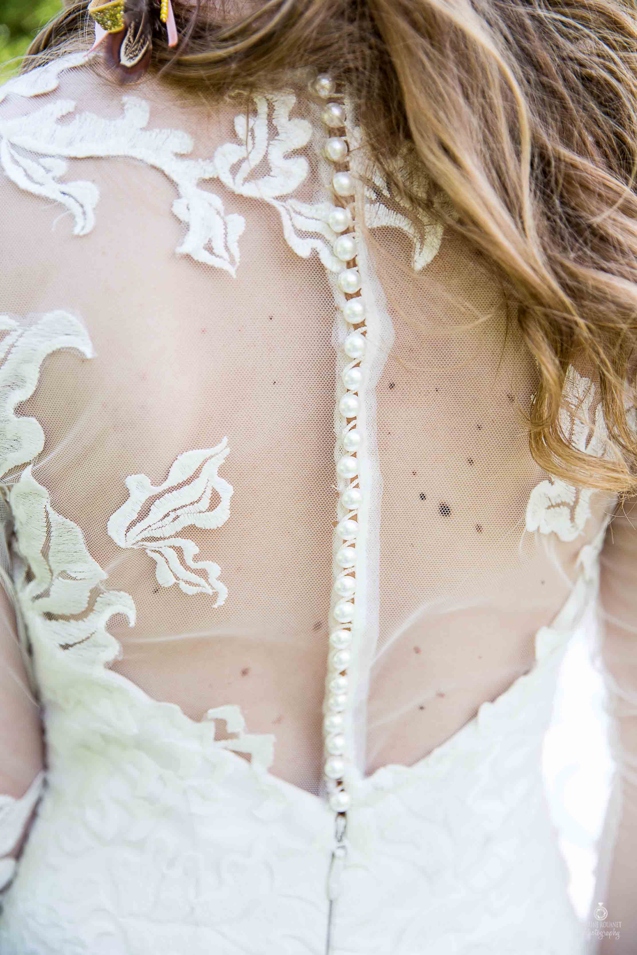 Avez vous perçu la subtilité de la mise en beauté de notre modèle mariée ? Avec toujours des couleurs pâles et sweet pour accompagner les éléments de sa tenue, elle affiche fièrement des accessoires en tissus faisant échos aux éléments naturels.