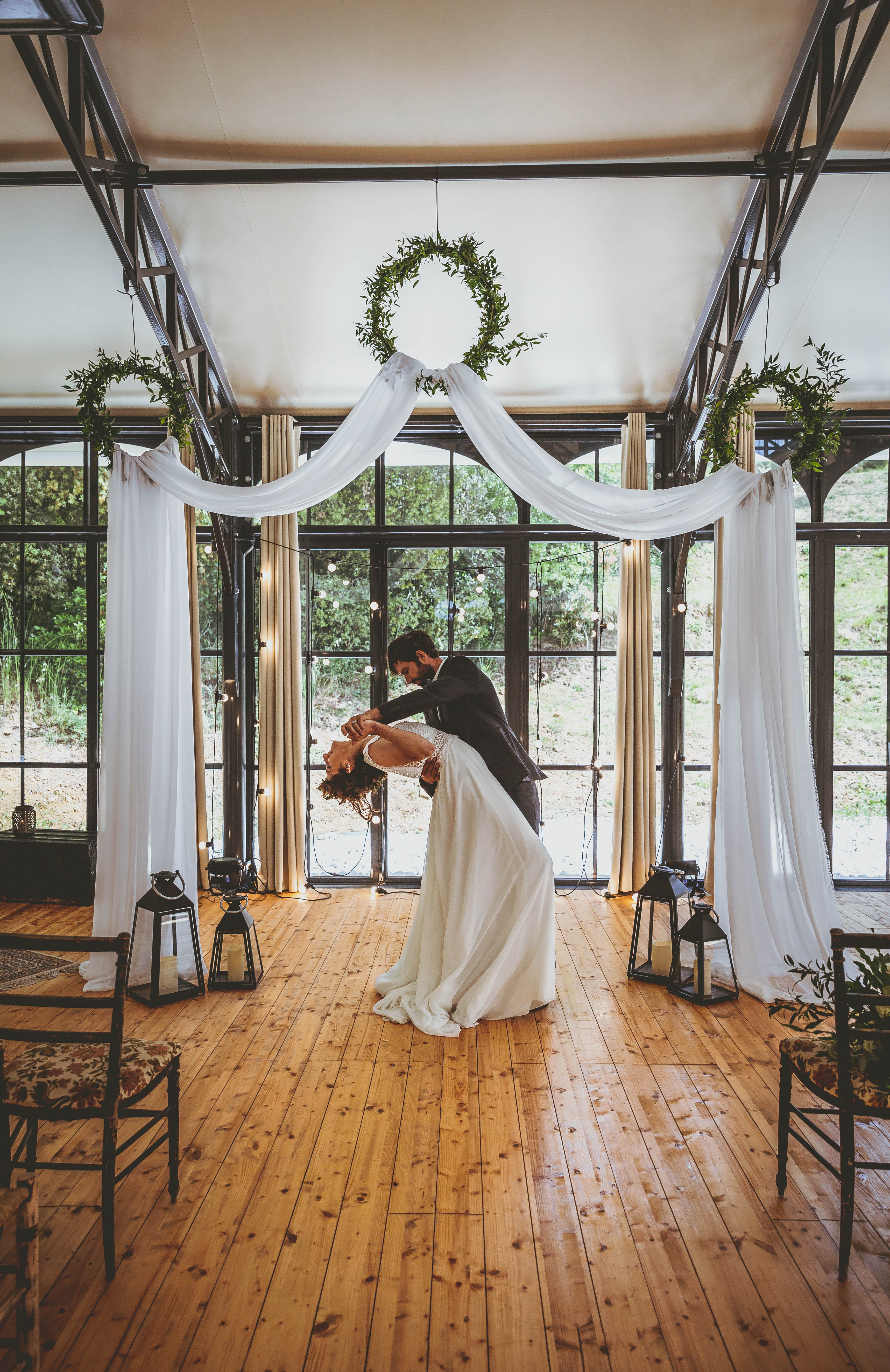 Organisation : Styled You / Lieu : L’Orangerie du Mas / Photographe : Sophie Photographie / Maquillage : Kimméa_Institut / Coiffure : Sublime&Moi Coiffeuse privé / Robe : Elsa Gary Lyon / Bijoux : Yzabel creation / Costume : Point Mariage / Nœud papillon et bretelles : Crabes & Compagnie / Fleuriste : Intempor’elle – fleuriste / Décoratrice : Le bazar de rêve By Véronique – Véronique Kouyoumdjian / Luminaires : Provence Réception / Créatrice panneau donuts : Les spirales d’Elise / Papeterie : Atelier Marie R. / Modèles : Albane et Youri