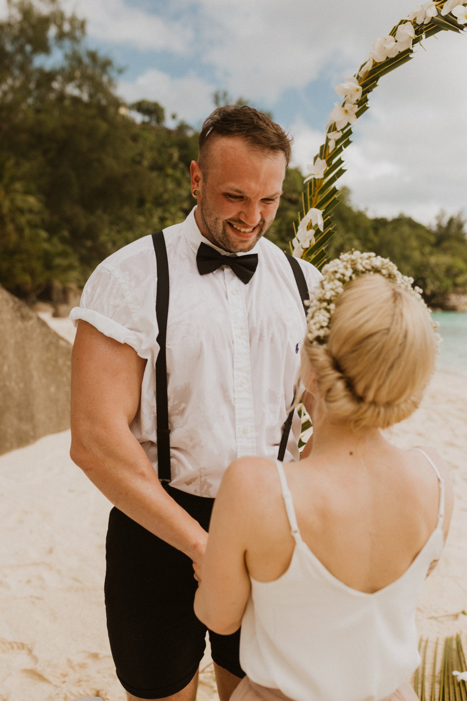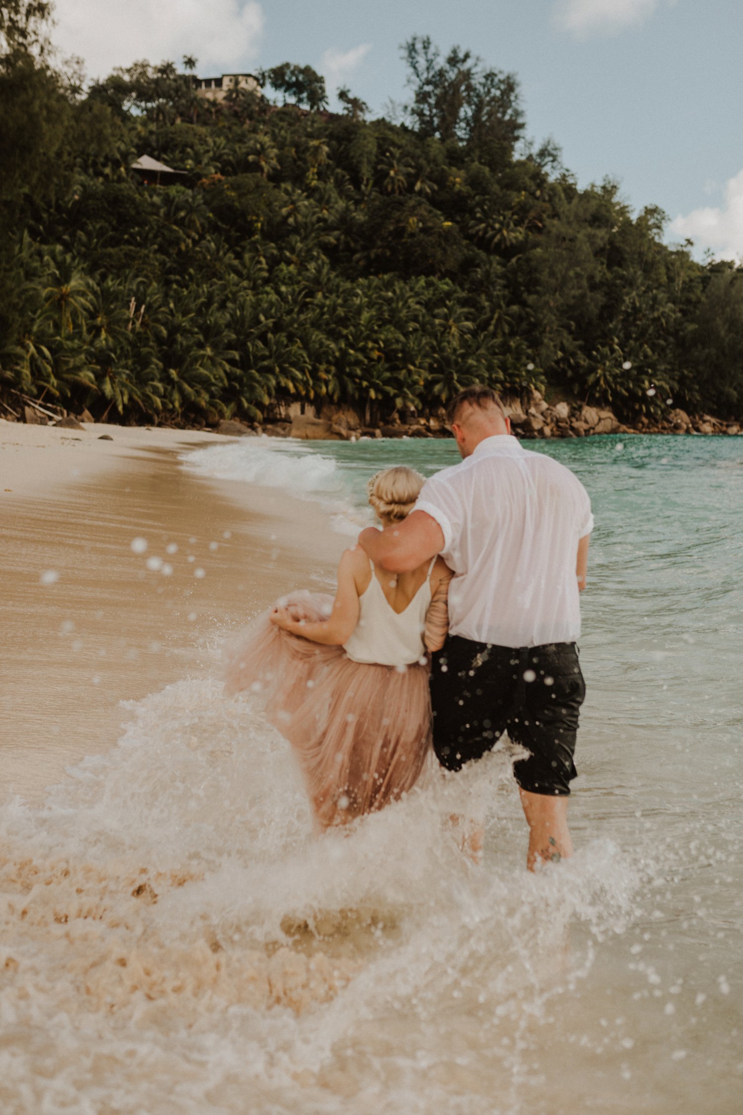 « Après la cérémonie, nous avons couru et sauté dans les vagues pour nous rafraîchir. Nous avons mangé des burgers, fait du snorkeling, nager jusqu’à la nuit tombée… Bref une journée vraiment parfaite à nos yeux. Mahé a maintenant une place très cher à notre coeur et représente pour nous le plus bel endroit au monde ! »