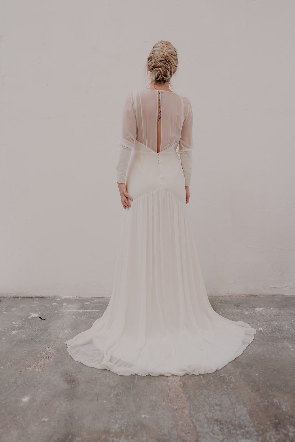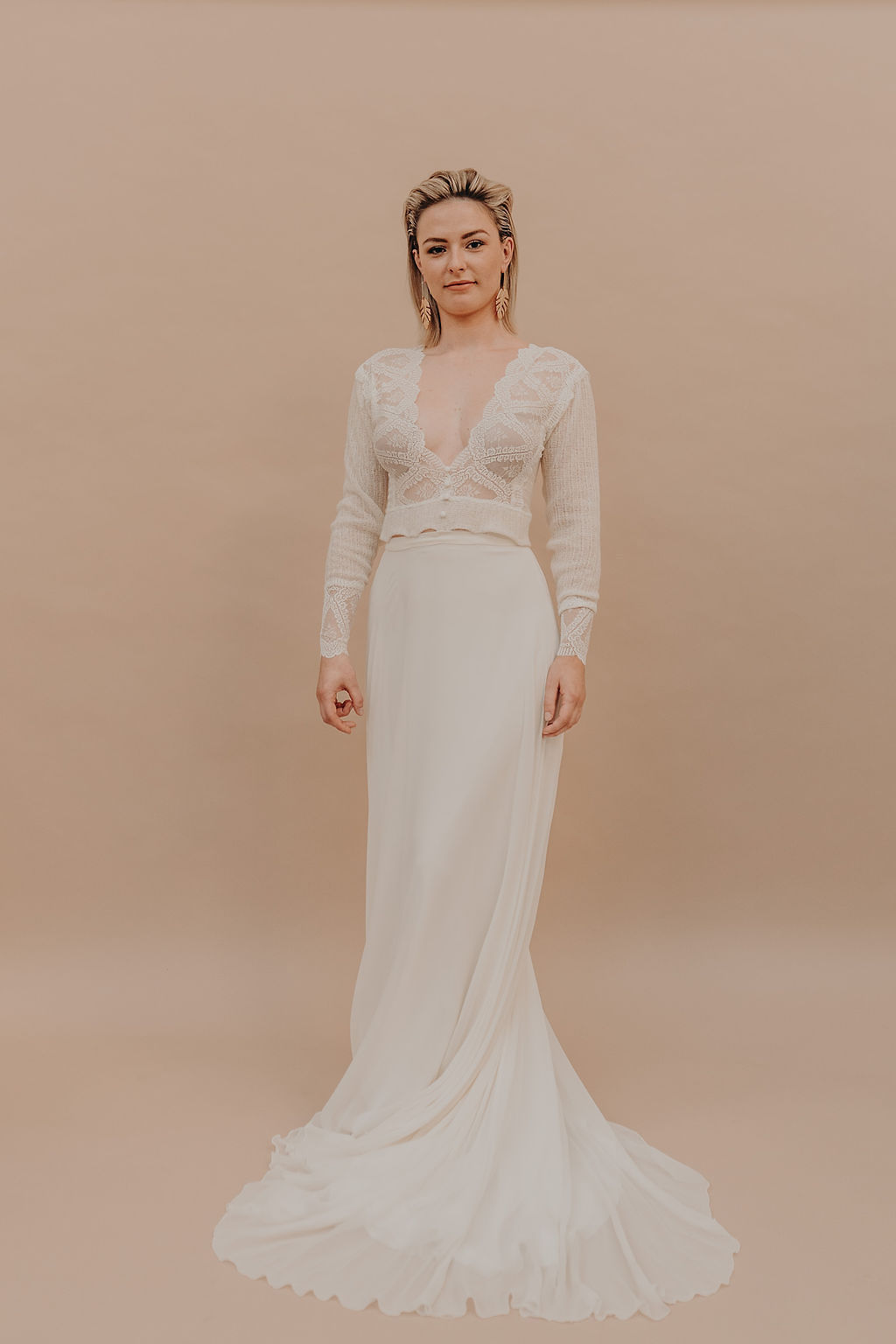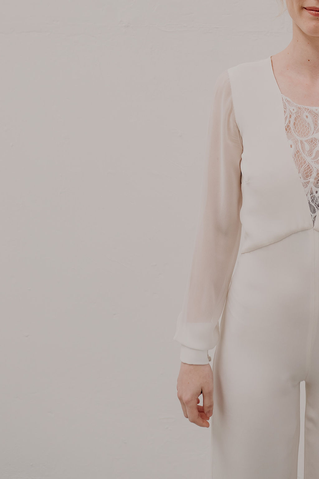 Perspective d’une parenthèse complice entre future mariée et créatrice, passerelle entre discrétion et extravagance. Elle reste stupéfaite des liens qui se tissent, de la confiance qui se lie. »