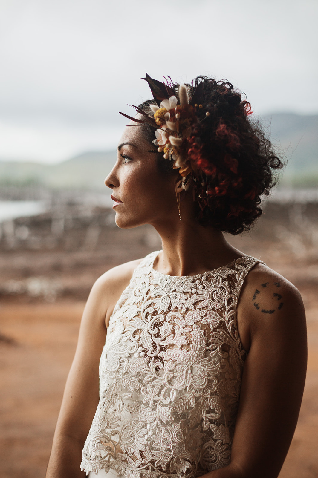 « A travers ce shooting d’inspiration, j’avais à cœur de donner une autre vision de la Calédonie. Ainsi qu’une autre vision des mariages que l’on voit sur notre territoire, comme une envie de bousculer un peu les codes. »